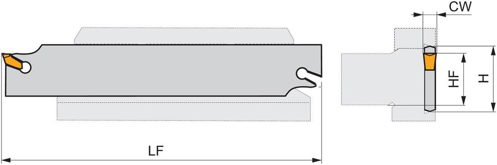 Ein-und Abstechschwert federgeklemmt zum spannen einer einseitigen Wendeschneidplatte mit 5mm Schnittbreite (Bezeichnung LFMX 5.1-. ) · Werkzeugbestückung mit 45-DU.. für eine maximale Einstechtiefe von 80mm · Werkzeugschwert-Höhe 45mm und Länge 250mm zum tiefes radiales Einstechen · Abstechen und Rohr-Abstechen