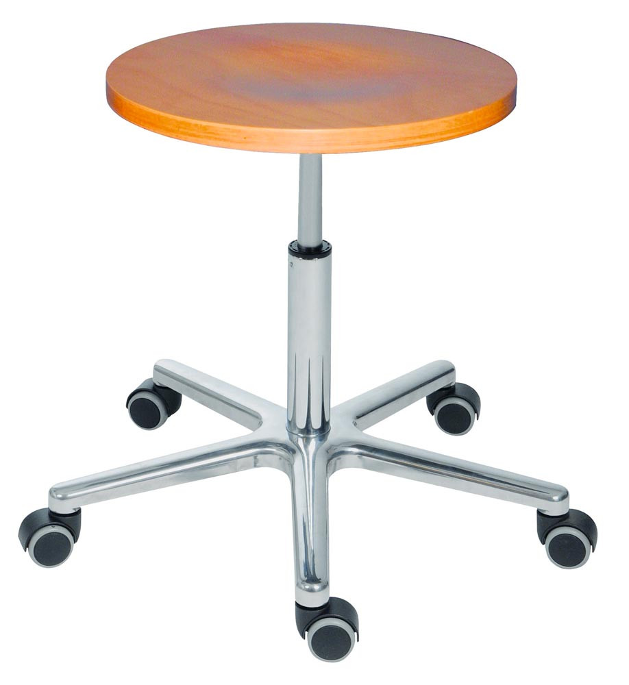 Drehhocker XL, Belastung bis 180 kg, mit Rollen, Sitzfläche Buche natur, Sitz Höhe 470-650 mm