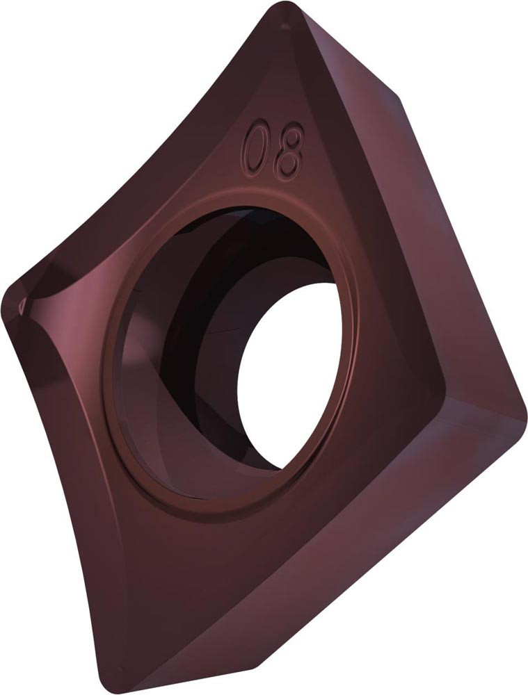 Einseitige positive Drehwendeschneidplatte · 80° Rhombisch mit 7° Freiwinkel · Innenkreisdurchmesser von 12.7mm · 4.76mm Dick · 0.8mm Radius · Indexgenauigkeit nach ISO-Toleranzklasse-G · Spanbrecher SF3 mit verrundeter Schneidkante · im Substrat T8415.