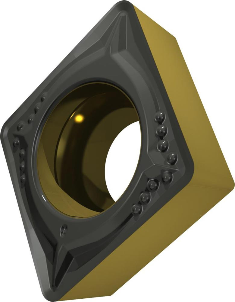 Einseitige positive Drehwendeschneidplatte · 80° Rhombisch mit 7° Freiwinkel · Innenkreisdurchmesser von 9.525mm · 3.97mm Dick · 0.8mm Radius · Indexgenauigkeit nach ISO-Toleranzklasse-M · Spanbrecher FM mit verrundeter Schneidkante · im Substrat T9415 · MT-CVD beschichtet WC-Co Substrat im ISO-Bereich P05 -P30 · zum schlichten bis medium bearbeiten von Stählen