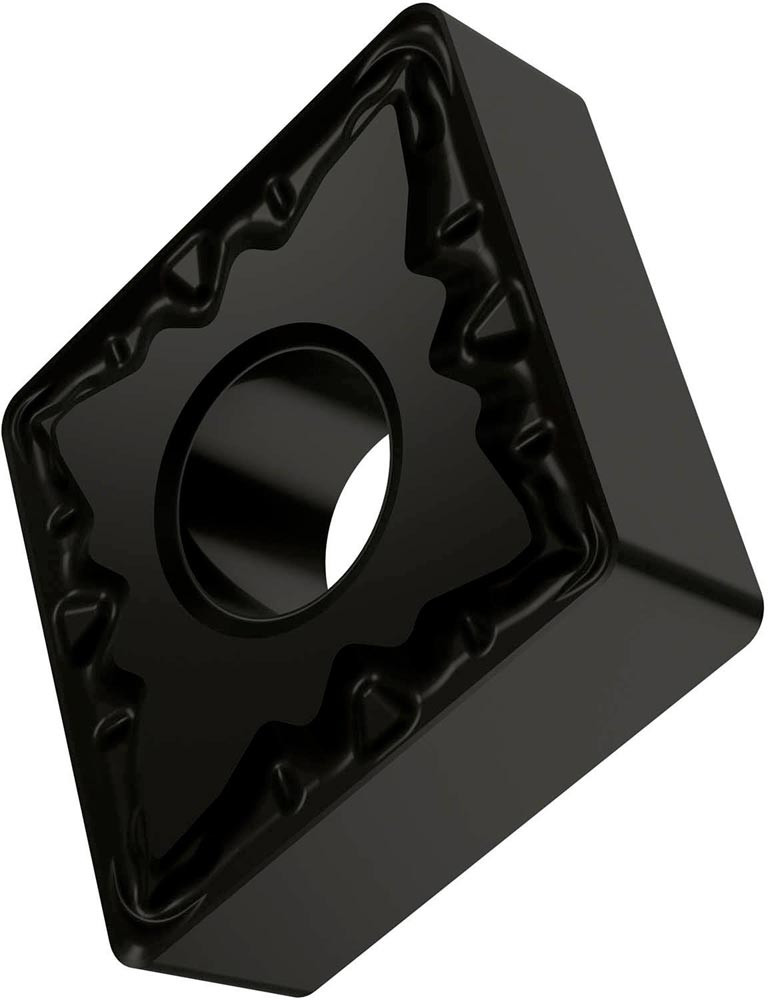 Doppelseitige negative Drehwendeschneidplatte · 80° Rhombisch mit Innenkreisdurchmesser von 12.7mm · 4.76mm Dick · 0.8mm Radius · Indexgenauigkeit nach ISO-Toleranzklasse-M · Spanbrecher FM mit verrundeter Schneidkante · im Substrat T7325 · MT-CVD beschichtet functionally graded WC-Co carbide · zum schlichten bis medium bearbeiten