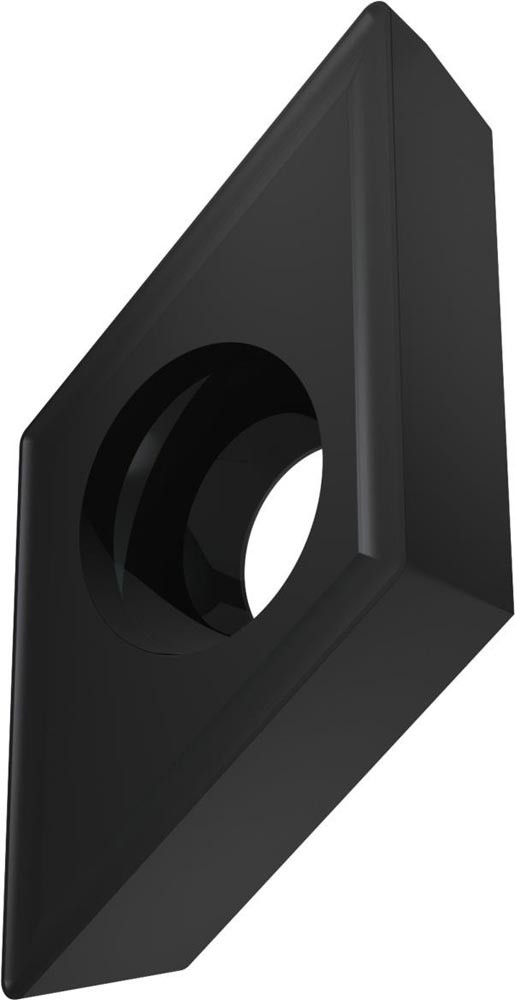 Einseitige positive Drehwendeschneidplatte · 55° Rhombisch mit 7° Freiwinkel · Innenkreisdurchmesser von 9.525mm · 3.97mm Dick · 0.4mm Radius · Indexgenauigkeit nach ISO-Toleranzklasse-M · Spanbrecher RF mit verrundeter Schneidkante · im Substrat T7335 · MT-CVD beschichtet functionally graded WC-Co carbide · zum schlichten bis schruppen bearbeiten