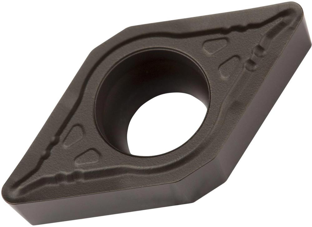 Einseitige positive Drehwendeschneidplatte · 55° Rhombisch mit 7° Freiwinkel · Innenkreisdurchmesser von 9.525mm · 3.97mm Dick · 1.2mm Radius · Indexgenauigkeit nach ISO-Toleranzklasse-M · Spanbrecher UR mit verrundeter Schneidkante · im Substrat T9325 · MT-CVD beschichtet functionally graded WC-Co carbide im ISO-Bereich P15 -P35 · zum schlichten bis schruppen bearbeiten von Stählen