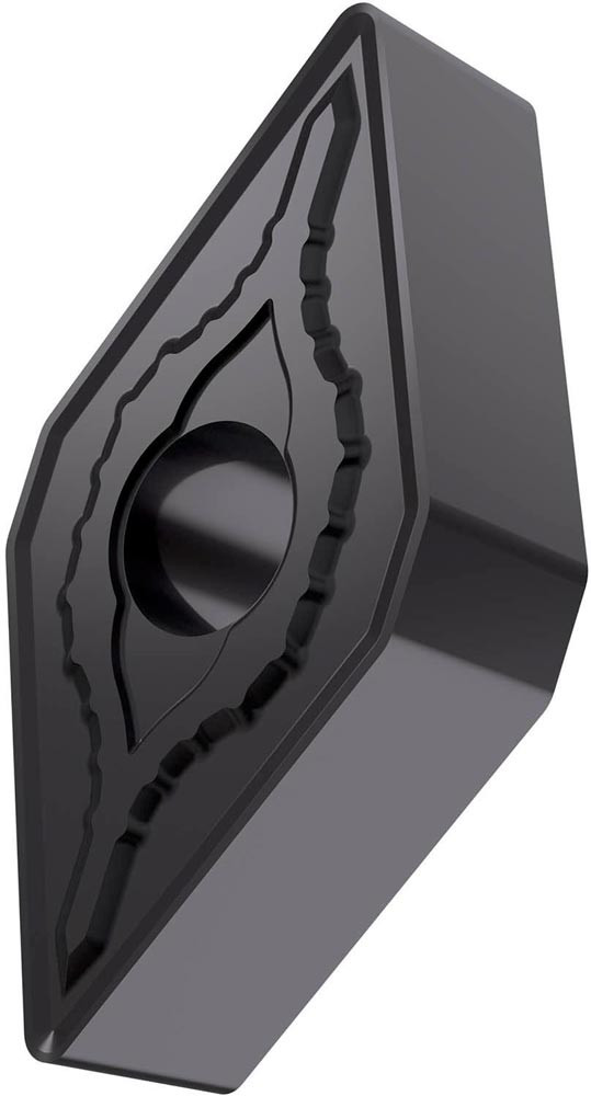 Doppelseitige negative Drehwendeschneidplatte · 55° Rhombisch mit Innenkreisdurchmesser von 9.525mm · 4.76mm Dick · 0.8mm Radius · Indexgenauigkeit nach ISO-Toleranzklasse-M · Spanbrecher SM mit verrundeter Schneidkante · im Substrat T6310 · PVD beschichtet WC-Co Feinstkornsubstrat in den ISO-Bereichen P01 -P15/M01 -M15/K05 -K20 und S01 -S15 · zum schlichten bis schruppen bearbeiten von Stählen · nichtrostenden Stählen · Gusseisen und Superlegierungen