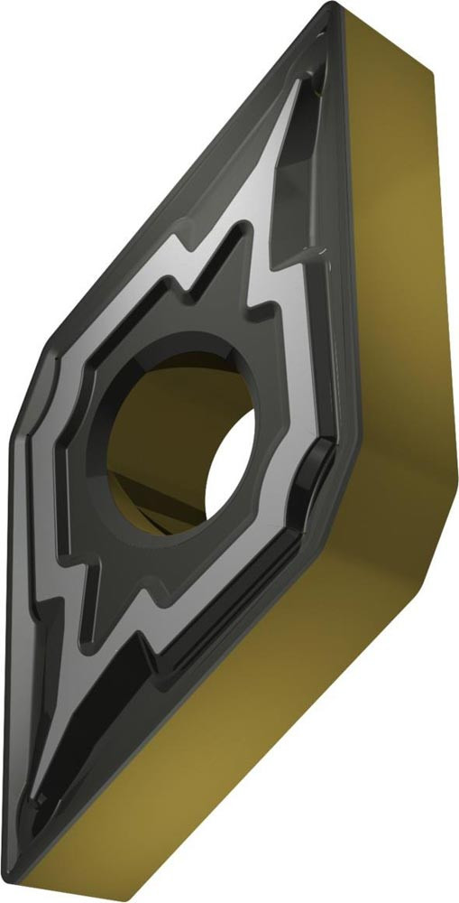 Doppelseitige negative Drehwendeschneidplatte · 55° Rhombisch mit Innenkreisdurchmesser von 12.7mm · 4.76mm Dick · 0.4mm Radius · Indexgenauigkeit nach ISO-Toleranzklasse-M · Spanbrecher M mit verrundeter Schneidkante · im Substrat T9415 · MT-CVD beschichtet WC-Co Substrat im ISO-Bereich P05 -P30 · zum schlichten bis schruppen bearbeiten von Stählen