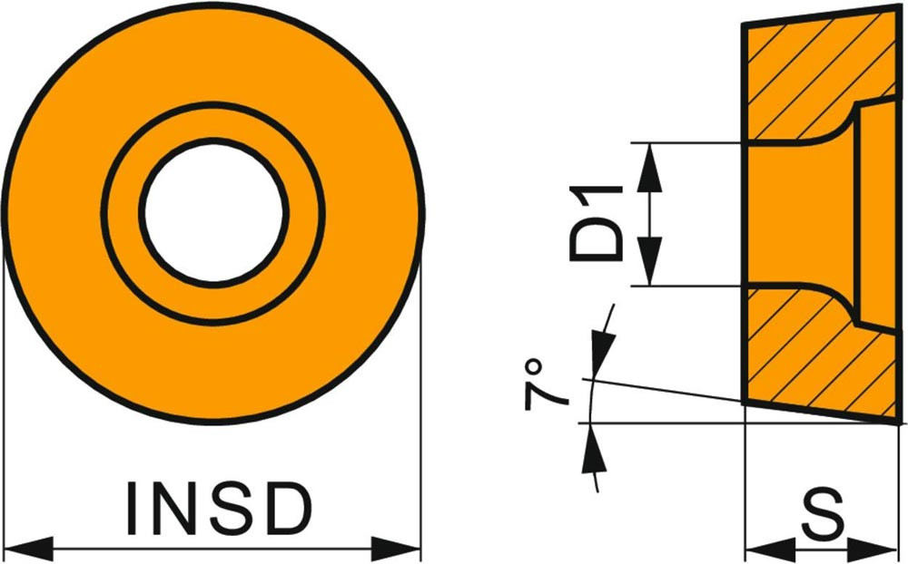 Einseitige positive Drehwendeschneidplatte · Rund mit 7° Freiwinkel · einem Durchmesser von 12mm · 4.76mm Dick · Indexgenauigkeit nach ISO-Toleranzklasse-M · im Substrat T5305 · MT-CVD beschichtet WC-Co Substrat im ISO-Bereich K01 -K15 · zum schlichten bis medium bearbeiten von Gusseisen