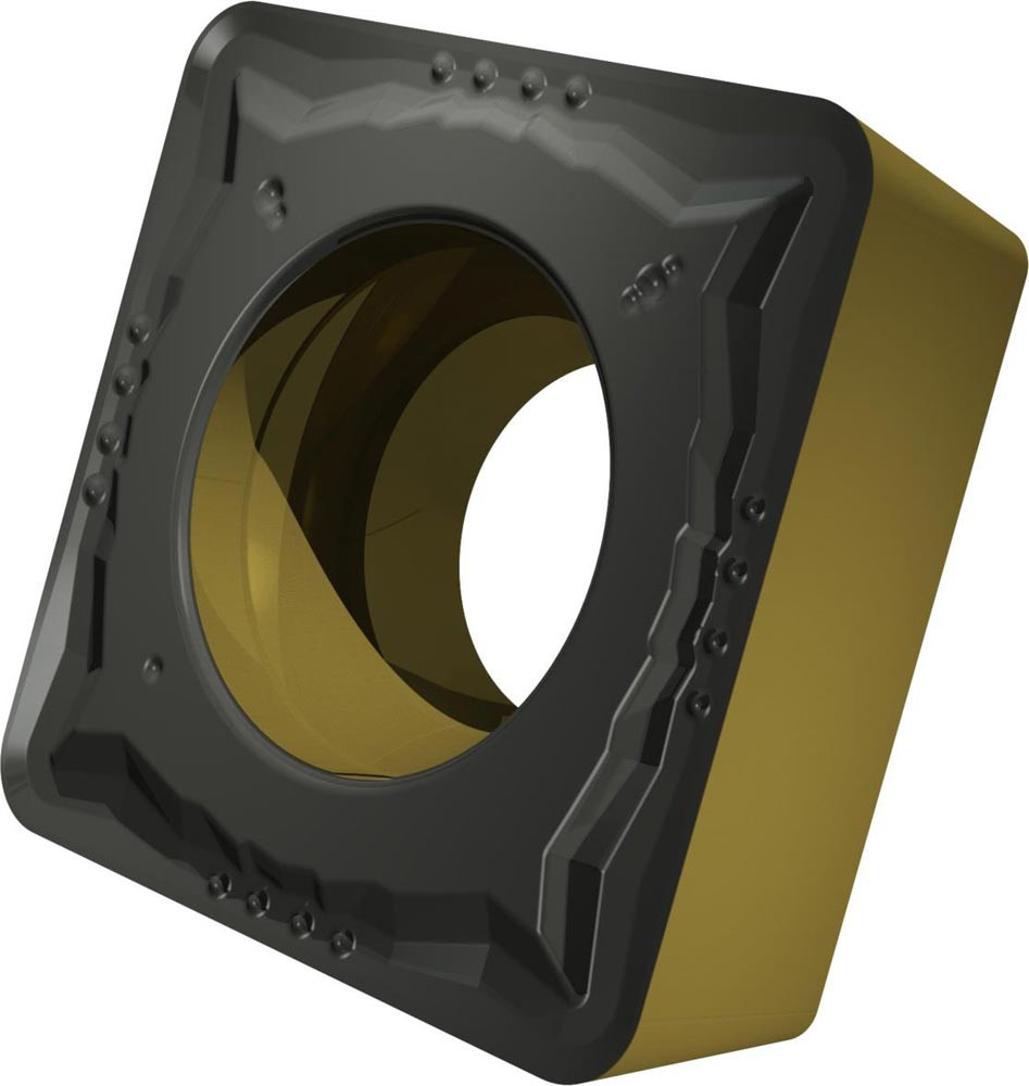 Einseitige positive Drehwendeschneidplatte · Viereckig mit 7° Freiwinkel · Innenkreisdurchmesser von 12.7mm · 4.76mm Dick · 1.2mm Radius · Indexgenauigkeit nach ISO-Toleranzklasse-M · Spanbrecher FM mit verrundeter Schneidkante · im Substrat T9415 · MT-CVD beschichtet WC-Co Substrat im ISO-Bereich P05 -P30 · zum schlichten bis medium bearbeiten von Stählen