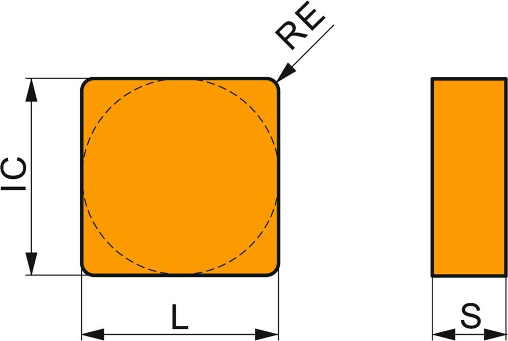 Doppelseitige Dreh-Wendeschneidplatte · Viereckig · gerade · with Innenkreisdurchmesser 12.7mm · 4.76mm Dick · 0.8mm Schneidenradius · Wiederholgenauigkeit nach ISO-Toleranzklasse G · facettierter Schneidkante T-land -20°/0.1mm · im Substrat TC100 · unbeschichtetes Keramik im ISO-Bereich K01-K15 · zur Hochvorschub Bearbeitung von Guss