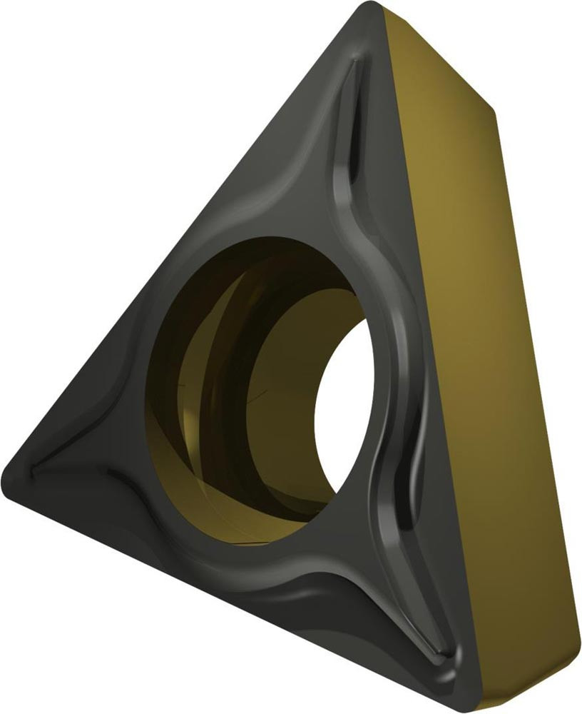 Einseitige positive Drehwendeschneidplatte · Triangular mit 7° Freiwinkel · Innenkreisdurchmesser von 3.97mm · 1.98mm Dick · 0.2mm Radius · Indexgenauigkeit nach ISO-Toleranzklasse-M · Spanbrecher FF2 mit verrundeter Schneidkante · im Substrat T9415 · MT-CVD beschichtet WC-Co Substrat im ISO-Bereich P05 -P30 · zum schlichten bis medium bearbeiten von Stählen