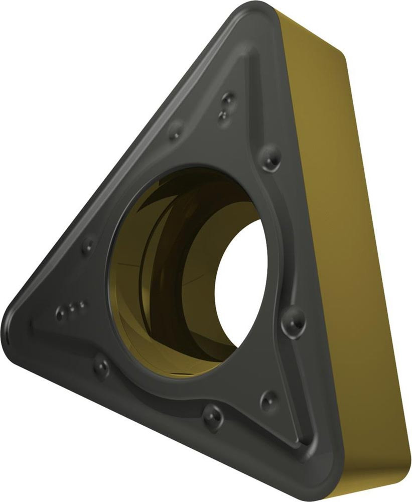Einseitige positive Drehwendeschneidplatte · Triangular mit 7° Freiwinkel · Innenkreisdurchmesser von 9.525mm · 3.97mm Dick · 1.2mm Radius · Indexgenauigkeit nach ISO-Toleranzklasse-M · Spanbrecher RM mit verrundeter Schneidkante · im Substrat T9415 · MT-CVD beschichtet WC-Co Substrat im ISO-Bereich P05 -P30 · zum schlichten bis schruppen bearbeiten von Stählen