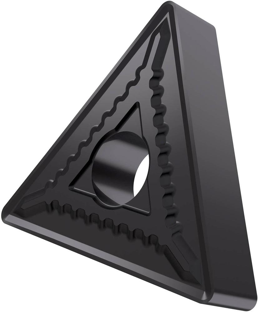 Doppelseitige negative Drehwendeschneidplatte · Triangular mit Innenkreisdurchmesser von 9.525mm · 4.76mm Dick · 0.8mm Radius · Indexgenauigkeit nach ISO-Toleranzklasse-M · Spanbrecher SM mit verrundeter Schneidkante · im Substrat T6310 · PVD beschichtet WC-Co Feinstkornsubstrat in den ISO-Bereichen P01 -P15/M01 -M15/K05 -K20 und S01 -S15 · zum schlichten bis schruppen bearbeiten von Stählen · nichtrostenden Stählen · Gusseisen und Superlegierungen
