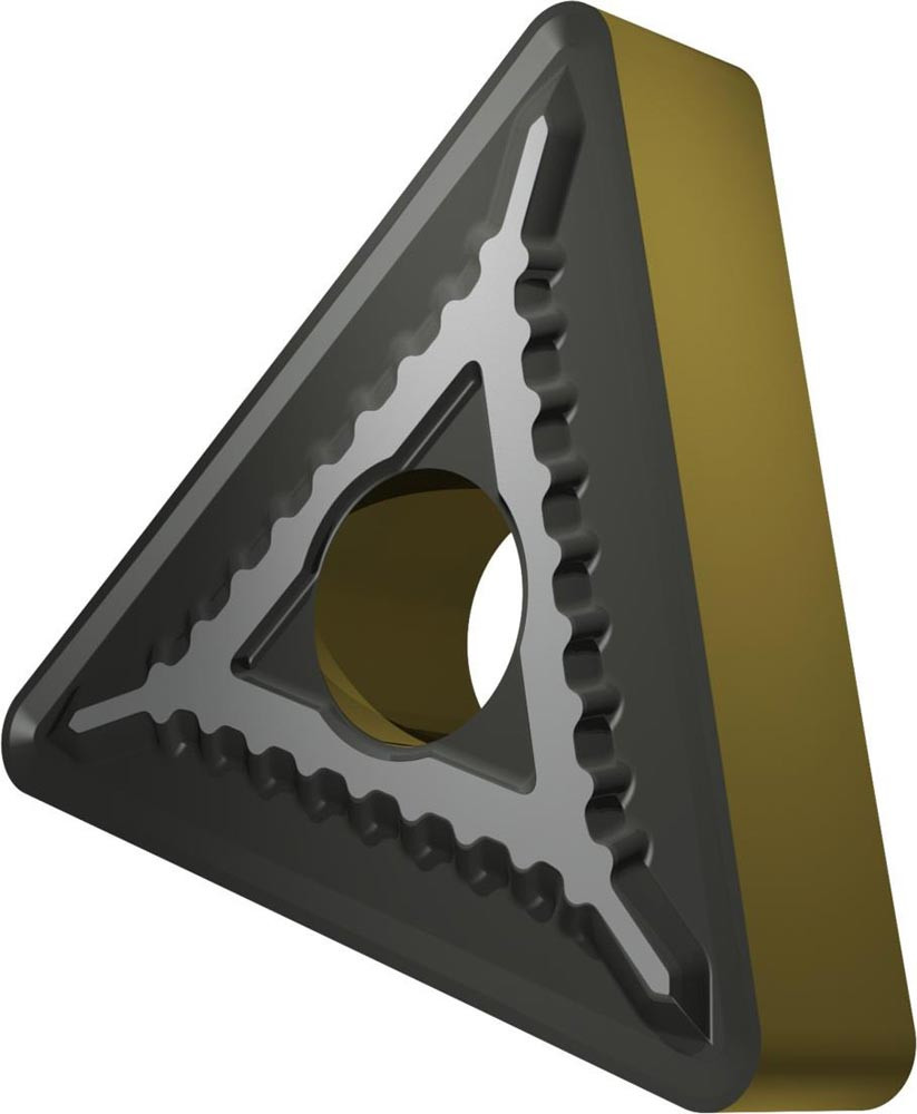 Doppelseitige negative Drehwendeschneidplatte · Triangular mit Innenkreisdurchmesser von 12.7mm · 4.76mm Dick · 1.2mm Radius · Indexgenauigkeit nach ISO-Toleranzklasse-M · Spanbrecher SM mit verrundeter Schneidkante · im Substrat T9415 · MT-CVD beschichtet WC-Co Substrat im ISO-Bereich P05 -P30 · zum schlichten bis schruppen bearbeiten von Stählen