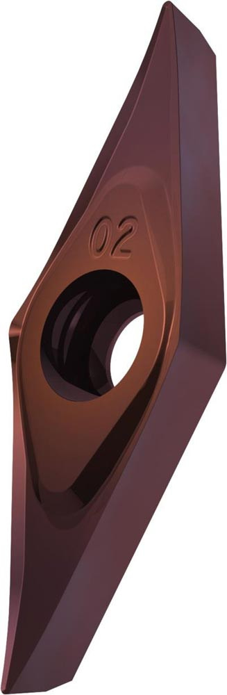 Einseitige positive Drehwendeschneidplatte · 35° Rhombisch mit 7° Freiwinkel · Innenkreisdurchmesser von 6.35mm · 2.38mm Dick · 0.4mm Radius · Indexgenauigkeit nach ISO-Toleranzklasse-G · Spanbrecher SF3 mit verrundeter Schneidkante · im Substrat T8415.