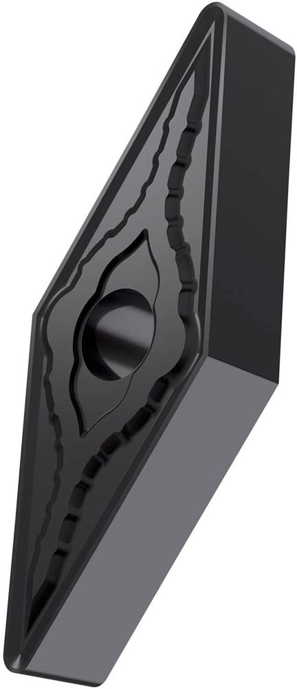Doppelseitige negative Drehwendeschneidplatte · 35° Rhombisch mit Innenkreisdurchmesser von 9.525mm · 4.76mm Dick · 0.8mm Radius · Indexgenauigkeit nach ISO-Toleranzklasse-M · Spanbrecher SM mit verrundeter Schneidkante · im Substrat T6310 · PVD beschichtet WC-Co Feinstkornsubstrat in den ISO-Bereichen P01 -P15/M01 -M15/K05 -K20 und S01 -S15 · zum schlichten bis schruppen bearbeiten von Stählen · nichtrostenden Stählen · Gusseisen und Superlegierungen
