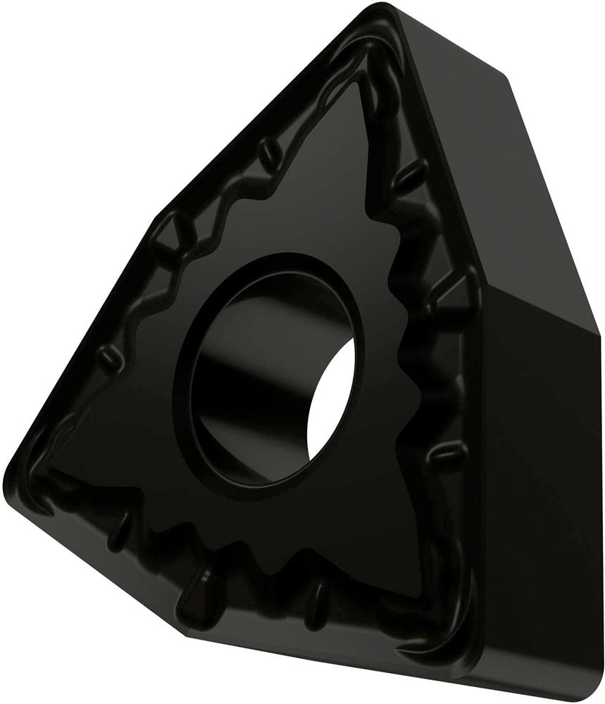 Doppelseitige negative Drehwendeschneidplatte · 80° Trigon mit Innenkreisdurchmesser von 9.525mm · 4.76mm Dick · 0.4mm Radius · Indexgenauigkeit nach ISO-Toleranzklasse-M · Spanbrecher FM mit verrundeter Schneidkante · im Substrat T7325 · MT-CVD beschichtet functionally graded WC-Co carbide · zum schlichten bis medium bearbeiten