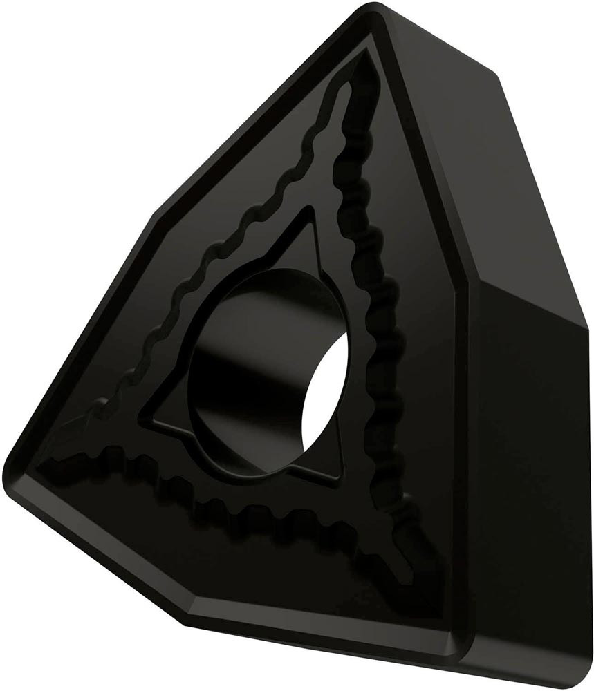 Doppelseitige negative Drehwendeschneidplatte · 80° Trigon mit Innenkreisdurchmesser von 9.525mm · 4.76mm Dick · 0.4mm Radius · Indexgenauigkeit nach ISO-Toleranzklasse-M · Spanbrecher SM mit verrundeter Schneidkante · im Substrat T7335 · MT-CVD beschichtet functionally graded WC-Co carbide in den ISO-Bereichen M20 -M40 und S15 -S25 · zum schlichten bis schruppen bearbeiten von nichtrostenden Stählen und Superlegierungen
