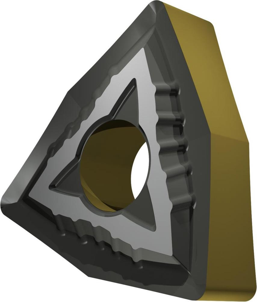 Doppelseitige negative Drehwendeschneidplatte · 80° Trigon mit Innenkreisdurchmesser von 12.7mm · 4.76mm Dick · 0.8mm Radius · Indexgenauigkeit nach ISO-Toleranzklasse-M · Spanbrecher SF mit verrundeter Schneidkante · im Substrat T9415 · MT-CVD beschichtet WC-Co Substrat im ISO-Bereich P05 -P30 · zum schlichten bis medium bearbeiten von Stählen