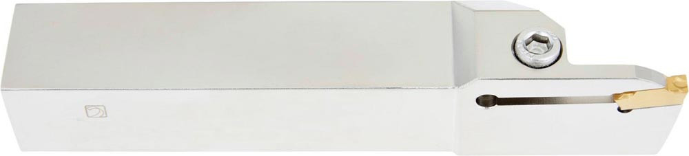 Einstechwerkzeug von oben geklemmt zum spannen einer 16.4mm langen doppelt oder einseitigen Wendeschneidplatte mit 3mm Schnittbreite (Bezeichnung LCM. 0316.. ) · linke Ausführung mit Wendeschneidplatte parallel zum Schaft für einen maximalen Stechdurchmesser von 30mm · Schafthöhe 20mm · Breite 20mm und Werkzeuglänge 125mm zum Mehrweg Kopierdrehen · flaches und tiefes radiales Einstechen · radiales Stechdrehen · Abstechen und Rohr-Abstechen
