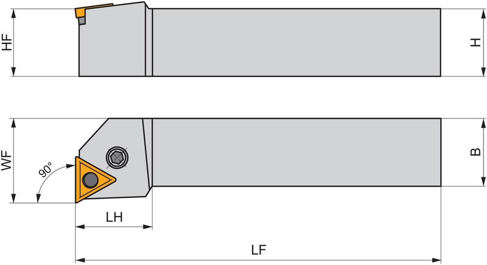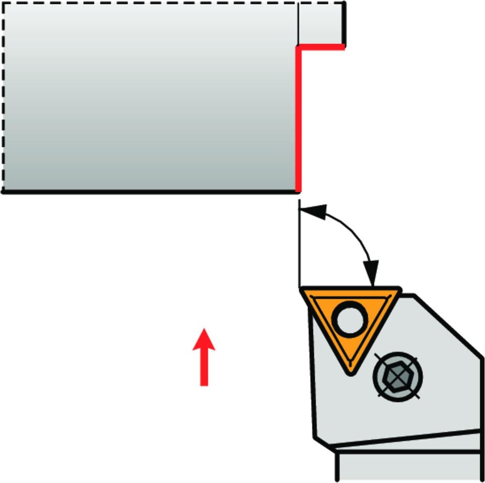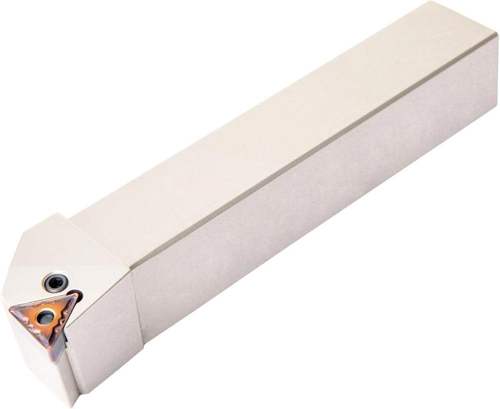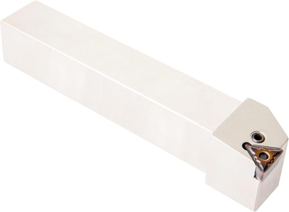 Dreh-Trägerwerkzeug mit Kniehebelklemmung zum spannen von Triangular negative Wendeschneidplatten mit einem Innenkreisdurchmesser von 12.7mm · 4.76mm Dick (ISO Bezeichnung TN.. 2204.. ) · rechte Ausführung zum 90° Längsdrehen mit abgesetzem Schaft · 32mm Werkzeughöhe x 25mm Breite x 170mm Länge für Stirndrehen ohne Schulter