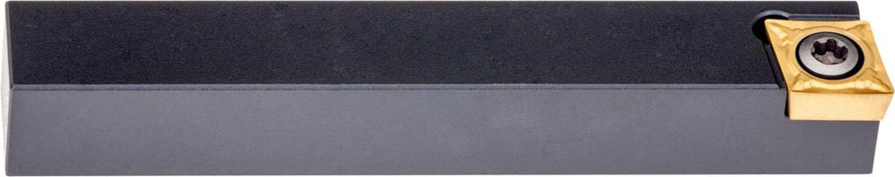 Dreh-Trägerwerkzeug mit Schraubklemmung zum spannen von 80° Rhombus positive Wendeschneidplatten mit einem Innenkreisdurchmesser von 6.35mm · 2.38mm Dick (ISO Bezeichnung CC.. 0602.. ) · linke Ausführung zum 90° Stirndrehen mit Zylinderschaft · 8mm Werkzeughöhe x 8mm Breite x 60mm Länge für entgraten · Kegeldrehen und Längsdrehen mit und ohne Schulter