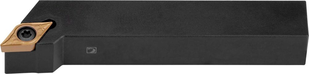Dreh-Trägerwerkzeug mit Schraubklemmung zum spannen von 55° Rhombus positive Wendeschneidplatten mit einem Innenkreisdurchmesser von 12.7mm · 4.76mm Dick (ISO Bezeichnung DC.. 1504.. ) · rechte Ausführung zum 93° Stirndrehen mit abgesetzem Schaft · 25mm Werkzeughöhe x 25mm Breite x 150mm Länge für entgraten · Kegeldrehen · Kopierdrehen in einer und mehreren Richtungen und Längsdrehen mit und ohne Schulter