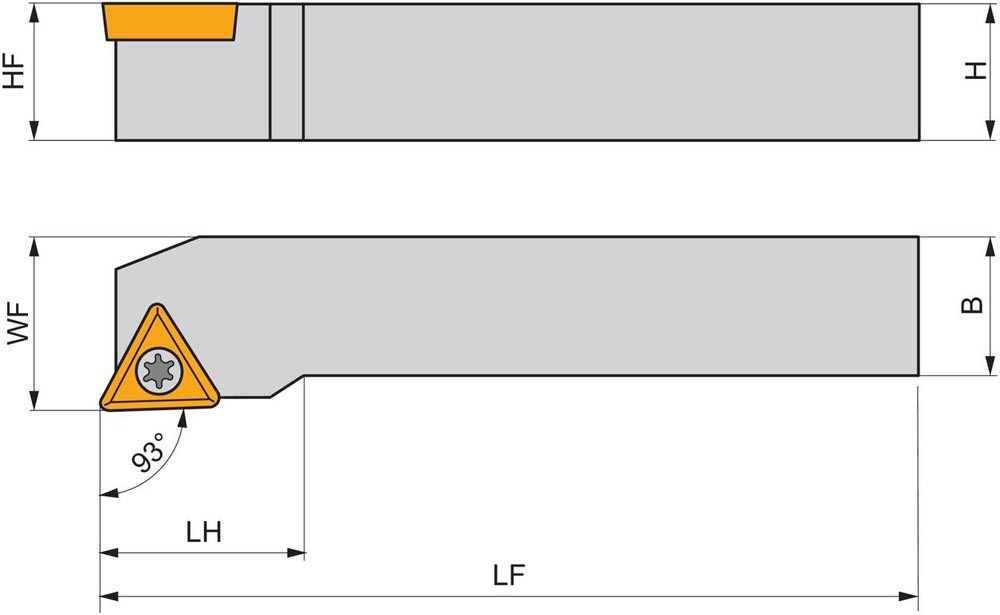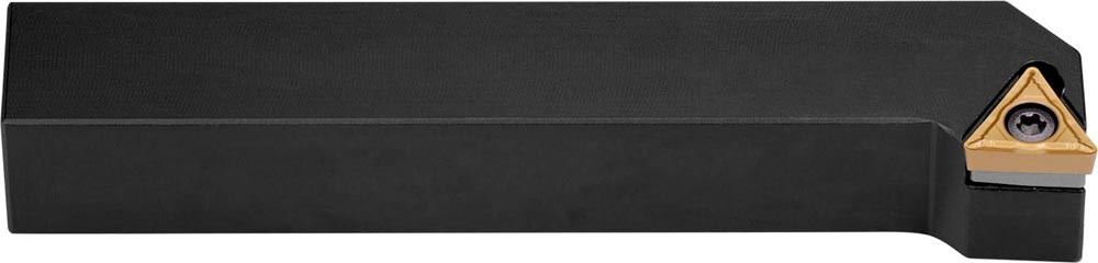 Dreh-Trägerwerkzeug mit Schraubklemmung zum spannen von Triangular positive Wendeschneidplatten mit einem Innenkreisdurchmesser von 9.525mm · 3.97mm Dick (ISO Bezeichnung TC.. 16T3.. ) · linke Ausführung zum 93° Stirndrehen mit abgesetzem Schaft · 20mm Werkzeughöhe x 20mm Breite x 125mm Länge für Kegeldrehen und Längsdrehen mit und ohne Schulter