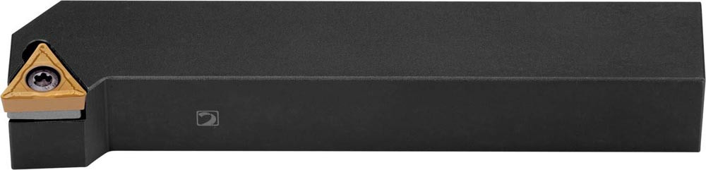 Dreh-Trägerwerkzeug mit Schraubklemmung zum spannen von Triangular positive Wendeschneidplatten mit einem Innenkreisdurchmesser von 9.525mm · 3.97mm Dick (ISO Bezeichnung TC.. 16T3.. ) · rechte Ausführung zum 93° Stirndrehen mit abgesetzem Schaft · 20mm Werkzeughöhe x 20mm Breite x 125mm Länge für Kegeldrehen und Längsdrehen mit und ohne Schulter