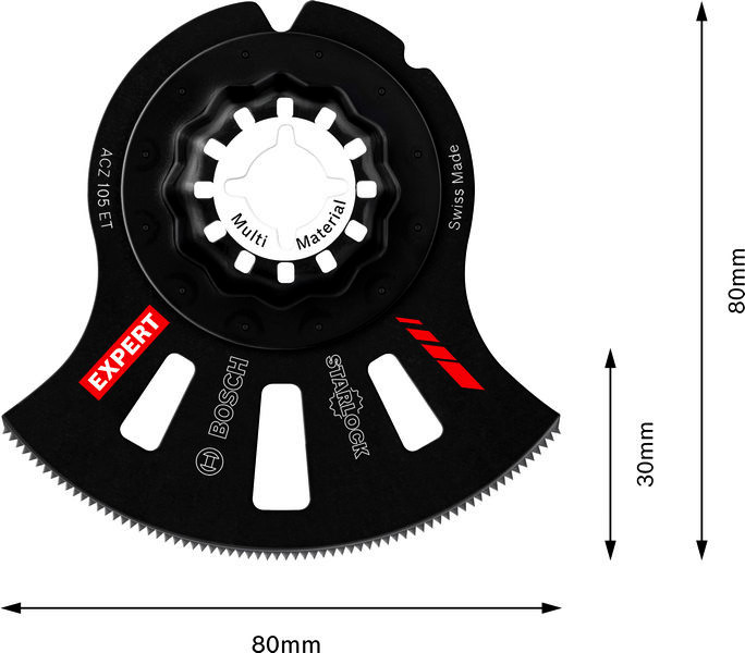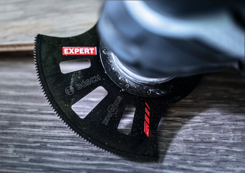 Lange Lebensdauer beim Schneiden von abrasivem Material und Verbundwerkstoffen! Dickeres Blatt für zusätzliche Robustheit und Stabilität Backstein und Zement hinter einem Türrahmen oder unter einer Diele brachte die Arbeit früher oft zum Stillstand. Ein teurer Blattwechsel war notwendig. Nicht mit dem EXPERT ACZ 105 ET Multi Material, einem Sägeblatt, das robust genug ist, um Fugenmörtel und Mörtel, aber auch Arbeitsplatten mit fester Oberfläche und abrasive Laminate und Verbundwerkstoffe zu schneiden. Es macht einfach weiter. Das EXPERT ACZ 105 ET Multi Material-Segmentsägeblatt für Multifunktionswerkzeuge ist ein weiterer Fortschritt in der Bosch Carbide-Technologie: Zum ersten Mal wurde ein großer gebogener Carbide-Streifen fest mit einem Blatt für Multifunktionswerkzeuge verschweißt. Es bietet die höchste Präzision und Lebensdauer unter den Segmentblättern. Überragende Lebensdauer dank Bosch Carbide Technology