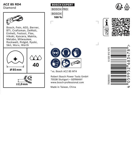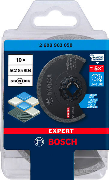 EXPERT ACZ 85 RD4 Grout Segment Blade, 85 mm, 10-tlg. Spitzes Segmentsägeblatt für präzise Arbeiten bis in Ecken. Außergewöhnlich robuste Schneidekante mit Bosch Diamond Technology