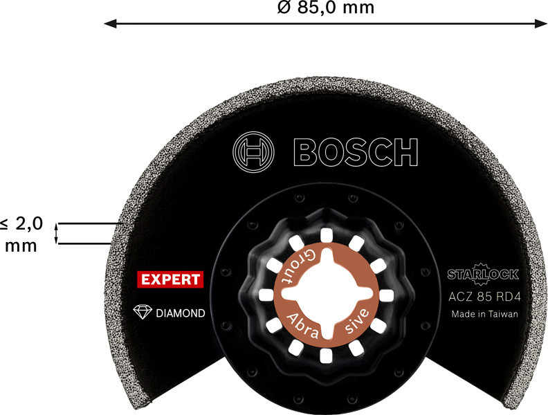 Hohe Lebensdauer in Fugenmörtel und weichen Fliesen! Spitzes Segmentsägeblatt für präzise Arbeiten bis in Ecken Das Entfernen von alten Fugenmassen ist eine einzigartige Fähigkeit, die das oszillierende Multifunktionswerkzeuge zu einem Favoriten bei Fliesenlegern und Badinstallateuren gemacht hat. Aber das Entfernen von Mörtel kann schwierig sein: Nur die besten Blätter können die Anforderungen der Profis an ihr Multifunktionswerkzeug erfüllen. Für Fliesenleger, Klempner und alle, die Fugenmörtel ausschneiden müssen, sind Diamanten die allererste Wahl. Außergewöhnlich robuste Schneidekante mit Bosch Diamond Technology