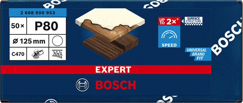 Schnelles Schleifen von Farbe und Holz! Die in der Produktion erfolgte Kornausrichtung sorgt für ein aggressives Schleifen Das Schleifen großer Flächen ist zeitaufwändig: Viele Schleifpapiere setzen sich schnell mit Staub zu und verlieren ihre Abrasivität, wodurch der eigentliche Schleifprozess mehr Zeit benötigt. Durch die Kombination von scharfen Körnern und spezieller Technologie, welche das Zusetzen verhindert, behält das EXPERT C470 Schleifpapier seine besonderen Fähigkeiten bei. Dies bedeutet, dass du schneller und länger arbeiten kannst, ohne Kompromisse beim Schleifergebnis eingehen zu müssen. Verbringe weniger Zeit mit dem Schleifen oder erledige mehr Arbeiten in der gleichen Zeit mit dem Bosch EXPERT C470 Schleifpapier. Außergewöhnliche Abtragsleistung mit Bosch Surface Structure