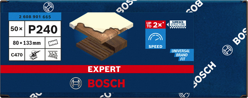 Schnelles Schleifen von Farbe und Holz! Die in der Produktion erfolgte Kornausrichtung sorgt für ein aggressives Schleifen Das Schleifen großer Flächen ist zeitaufwändig: Viele Schleifpapiere setzen sich schnell mit Staub zu und verlieren ihre Abrasivität, wodurch der eigentliche Schleifprozess mehr Zeit benötigt. Durch die Kombination von scharfen Körnern und spezieller Technologie, welche das Zusetzen verhindert, behält das EXPERT C470 Schleifpapier seine besonderen Fähigkeiten bei. Dies bedeutet, dass du schneller und länger arbeiten kannst, ohne Kompromisse beim Schleifergebnis eingehen zu müssen. Verbringe weniger Zeit mit dem Schleifen oder erledige mehr Arbeiten in der gleichen Zeit mit dem Bosch EXPERT C470 Schleifpapier. Außergewöhnliche Abtragsleistung mit Bosch Surface Structure