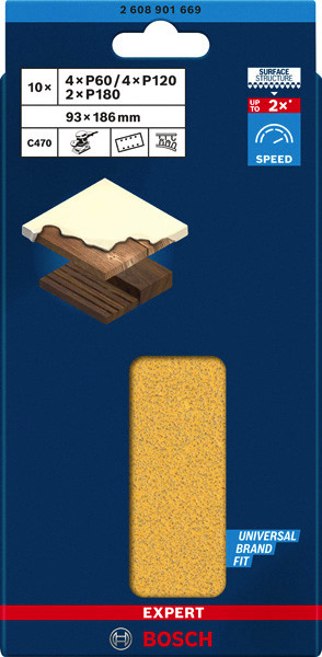 EXPERT C470 Schleifblatt Set, 93x186mm, K60-180, 8 Löcher, 10-tlg.