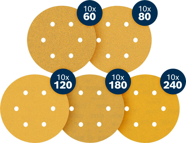 EXPERT C470 Schleifscheibe Set, 150mm, K60/80/120/180/240, 50-tlg. Starter Pack