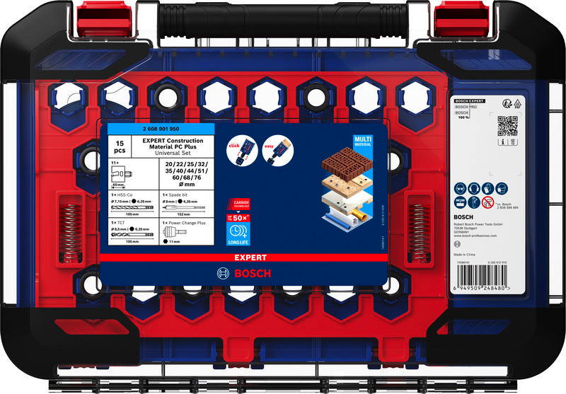 Lange Lebensdauer beim Schneiden von Löchern in Ziegelstein und Spanplatten! Geschliffene und geschärfte feine Carbide-Zähne für Festigkeit, Langlebigkeit und Präzision Das Schneiden von Löchern in Ziegelstein, weiche Fliesen und Trockenbauwände ist für Sanitärinstallateure und Elektriker auf einer Baustelle oder bei Renovierungsarbeiten unerlässlich. Nur wenige Lochsägen können dieser Art von Arbeit mit verschiedenen robusten Baumaterialien standhalten. Für die EXPERT Construction Material PC Plus ist das möglich. Mit einer Lochsäge lassen sich viele Arbeiten über eine lange Zeit erledigen. Die Bosch EXPERT Construction Material Lochsäge ist eine robuste Lochsäge, die auf der Baustelle sehr nützlich ist. Überragende Lebensdauer dank Bosch Carbide Technology