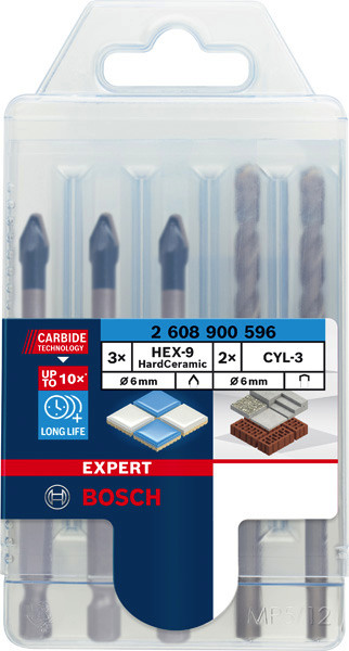 EXPERT HEX-9 Hard Ceramic Bohrer gemischtes Set, 6x90/ 6x100 mm, 5-tlg.