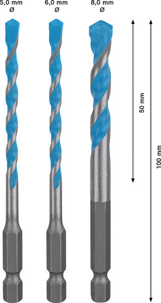 EXPERT HEX-9 Multi Construction Bohrer-Set, 5/6/8x100 mm, 3-tlg.
