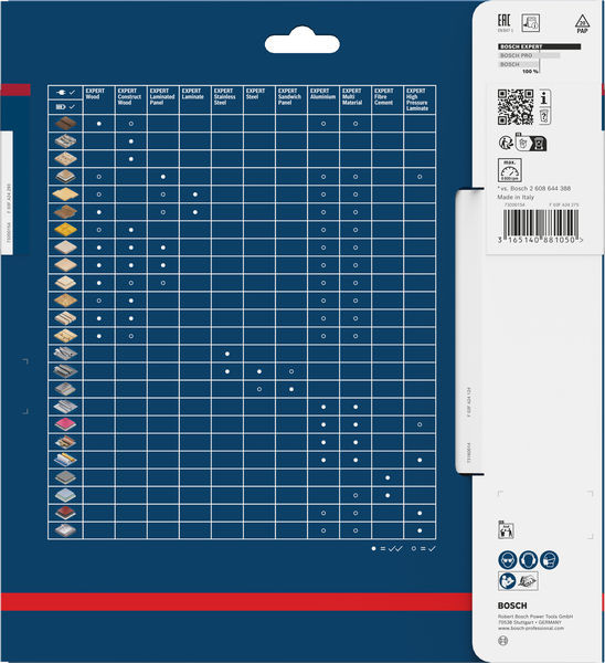 Lange Lebensdauer in Hochdruck-Schichtpressstoffplatten! Zusätzliche Beschichtung für mehr Leistung und längere Haltbarkeit Hochdruck-Schichtpressstoff wird aufgrund seiner Langlebigkeit häufig in der Bau- und Möbeltischlerei verwendet. Doch die Oberflächen können einem Kreissägeblatt sehr zusetzen. Mit unserem Kreissägeblatt EXPERT High Pressure Laminate lassen sich Hochdruck-Schichtpressstoffplatten problemlos schneiden effektiv und immer wieder. Die feinen Zähne des EXPERT High Pressure Laminate sind scharf geschliffen und wurden mit der Bosch Carbide Technology hergestellt. Dadurch ist es sehr langlebig und ermöglicht saubere, präzise Schnitte. Zum Schutz vor Wärmestau und Korrosion haben wir es mit einer zusätzlichen Beschichtung versehen. Außergewöhnlich robust dank Bosch Carbide Technology