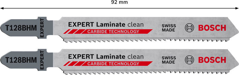 Hohe Lebensdauer bei sauberen Schnitten in Laminat! Carbide-Leiste bietet Steifigkeit und Festigkeit Wenn du Laminatböden oder HPL-Verkleidungen verlegst, möchtest du mit deiner Stichsäge einen sauberen Schnitt machen. Das Material ist aber so abrasiv, dass normale Blätter schnell stumpf werden und keine Leistung mehr bringen. Das EXPERT Laminate clean T128BHM-Blatt kombiniert das saubere Schneiden von entgegengerichteten Zähnen mit der Carbide-Technologie, um über eine sehr lange Lebensdauer eine hervorragende Leistung zu erzielen. Das Bosch EXPERT Laminate clean T128BHM-Stichsägeblatt ist ein leistungsstarkes Blatt für Laminatarbeiten. Aufgrund seiner sehr langen Lebensdauer ist es auch die erste Wahl für Profis, die kein Geld mehr für Stichsägeblätter verschwenden möchten, die nicht lange halten. Überragende Lebensdauer dank Bosch Carbide Technology