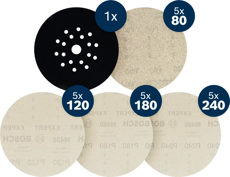 EXPERT M480 Schleifnetz-Set, 225mm, K80/120/180/240, Schleiftellerschoner, 21tlg