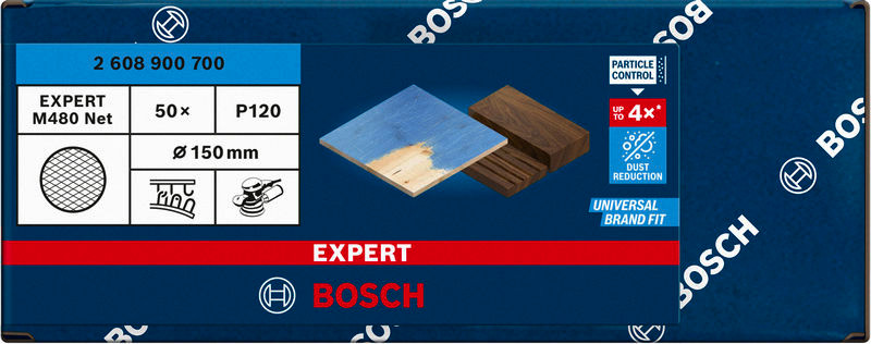 Schleiftellerschoner sorgen für noch weniger Staub und mehr Effizienz beim Schleifen von Holz, Farbe und Trockenbauwänden! Staub wird durch offene Netzstruktur abgesaugt Staub stellt beim Schleifen eines der Hauptprobleme dar. Er setzt dein Schleifpapier zu, wodurch dieses praktisch unbrauchbar wird. Er bedeckt alles im Raum und durchdringt das ganze Haus. Darum haben wir die Bosch Particle Control-Technologie entwickelt für staubreduziertes Arbeiten auf einem neuen Leistungsniveau. Es war nicht einfach, Staub beim Schleifen zu reduzieren, aber wir haben eine Lösung gefunden. Dieses Bosch EXPERT M480 Schleifnetz verwendet unsere Particle Control-Technologie, um die Staubmenge in der Luft auf ein Minimum zu reduzieren. Hocheffiziente Staubabsaugung mit Bosch Particle Control