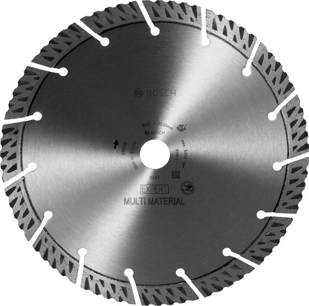 Herausragende Lebensdauer in Baumaterialien! Reibungsarme Segmente, um den Verschleiß an den Seiten zu minimieren Auf modernen Baustellen müssen viele verschiedene, harte Materialien geschnitten werden, die die Werkzeuge stark belasten. Die EXPERT Multi Material ist das ideale Zubehör für vielbeschäftigte Bauprofis, die Beton, Ziegelstein, Dachziegel und Stahlbeton schneiden müssen, denn sie bietet einfach eine höhere Lebensdauer. Diese Mischung aus optimaler Diamantkörnung und fortschrittlichen Designmerkmalen sorgt für eine unübertroffene Langlebigkeit der Bosch EXPERT Multi Material Diamanttrennscheibe. Sie schneidet zuverlässiger und länger als andere Diamantscheiben von Bosch und bietet letztendlich ein hervorragendes Preis-Leistungs-Verhältnis. Außergewöhnlich robuste Schneidekante mit Bosch Diamond Technology