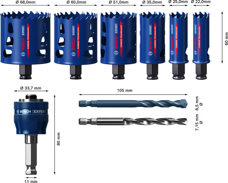 EXPERT Multi Material Power Change Plus-Lochsäge, 22/25/35/51/60/68x60 mm,9-tlg.