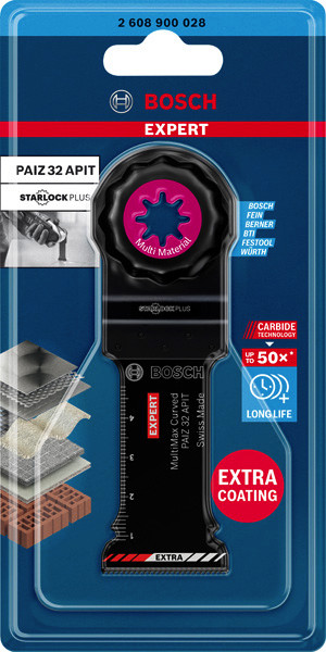 Herausragende Lebensdauer in Blech und abrasiven Materialien! Zusätzliche Beschichtung macht Carbide härter Unabhängig davon, ob du an Gebäuden oder Fahrzeugen arbeitest: Ein Blatt für Multifunktionswerkzeuge, das hervorragende Schnitte in jedes Material ermöglicht, erleichtert das Arbeitsleben erheblich. Das EXPERT MultiMax integriert alle fortschrittlichsten Fertigungstechniken von Bosch und macht dein Multifunktionswerkzeug extrem vielseitig. Die Curved-Tec-Blätter von Bosch überzeugen dank ihrer Fähigkeit, saubere Tauchschnitte und schwierige Schnitte auf hohem Niveau zu ermöglichen. Mit dem Bosch EXPERT MultiMax Blatt für Multifunktionswerkzeuge kannst du diese Fähigkeit für Tauchschnitte auf die härtesten Materialien wie Blech, Kohlefaser und roten Backstein übertragen. Überragende Lebensdauer dank Bosch Carbide Technology