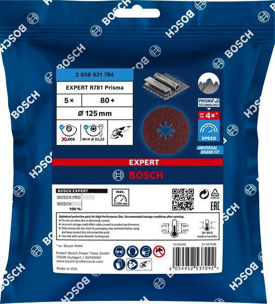 EXPERT R781 Fiberscheibe X-LOCK, 125mm, K80, 5-tlg.