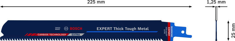 Herausragende Lebensdauer in dickem, zähem Metall! Breiter Körper für präzise, gerade Schnitte Das Schneiden durch dickes Metall wie Stahlprofile oder schwere Gussrohre gehört wahrscheinlich nicht zu deinen Lieblingsarbeiten. Klempner, Renovierer und Abbrucharbeiter wissen alle, dass für diese harte Arbeit selbst mit einer Hochleistungs-Säbelsäge Schweiß und Muskelkraft erforderlich sind. Das EXPERT Thick Tough Metal-Blatt schneidet nicht nur dickes Metall, es bietet auch eine außerordentlich lange Lebensdauer bei härtesten Einsätzen. Mit dem Bosch EXPERT Thick Tough Metal Säbelsägeblatt könntest du Gefallen am Schneiden von dickem Stahl und Gusseisen finden. Überragende Lebensdauer dank Bosch Carbide Technology