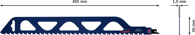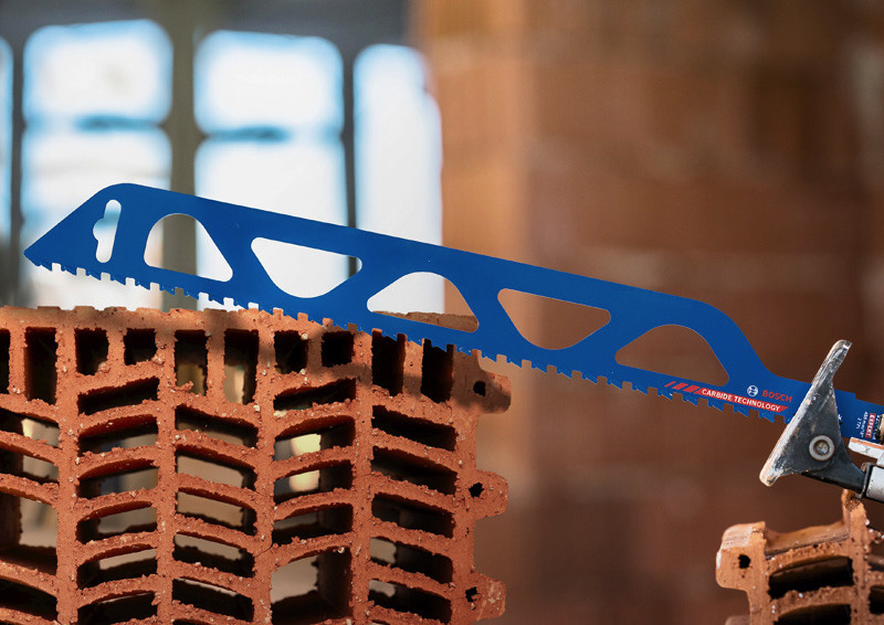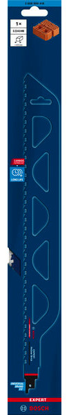 Expert Hollow Brick mit herausragender Lebensdauer in Hohlziegeln! Dickeres Blatt für zusätzliche Robustheit und Stabilität Handwerker und Maurer können durch das Schneiden von Hohlziegeln vor Ort ihre Arbeit beschleunigen und produktiver gestalten. Die meisten Säbelsägeblätter konnten jedoch in solchen abrasiven Mineralmaterialien nicht lange standhalten. Mit einem speziellen Carbide-Blatt wie dem EXPERT Hollow Brick können Maurer Hohlziegel bequem zuschneiden, ohne ihre Blätter zu zerstören. Das Bosch EXPERT Hollow Brick-Säbelsägeblatt macht die Säbelsäge schnell zu einem bevorzugten Werkzeug unter Maurern. Schneide deine Steine mit der Bosch Carbide Technology (Bosch Carbide-Technologie) zu. Überragende Lebensdauer dank Bosch Carbide Technology