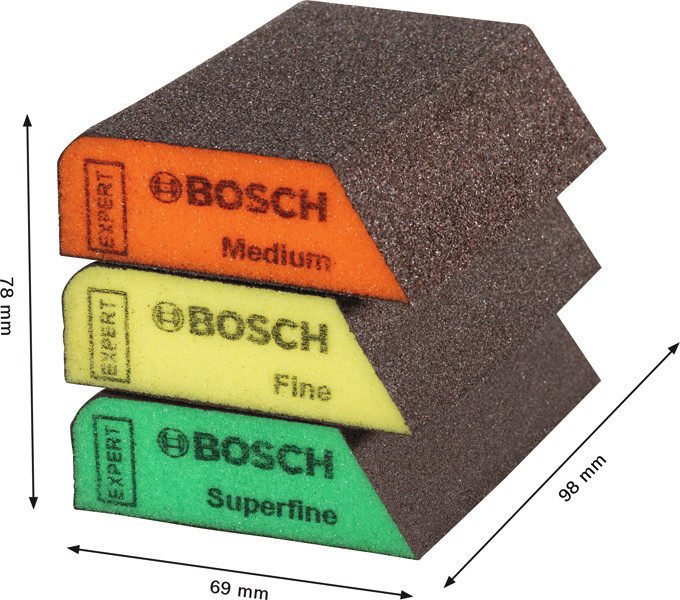 Längere Lebensdauer beim Schleifen von Holz und Farbe! Der Schleifschwamm sorgt für gleichmäßigen Druck auf die Oberfläche Manchmal gibt es keine Alternative zum Handschleifen. Das Problem war, dass sich herkömmliche Schleifblätter beim Schleifen von Rundungen und Kanten schnell abgenutzt haben. Oft waren sie auch zugesetzt oder brachen. Die einzige Lösung war, viele Schleifblätter zu kaufen, was zu einem hohen Verbrauch und viel Abfall führte. Heute gibt es Schleif-Schaumstoffe mit Bosch Surface Structure. Dank einer abgerundeten Kante und einer scharfkantigen Seite lassen sich mit diesem Schleifschwamm-Set auch schwer zugängliche Bereiche problemlos erreichen und schleifen. Der Bosch EXPERT S470 Combi-Schleifblock ist eine Revolution beim Handschleifen. Wenn du ihn einmal verwendet hast, möchtest du nie wieder etwas anderes. Starke, flexible Verbindung der Schleifkörner mit dem Schaumstoff dank Bosch Surface Structure