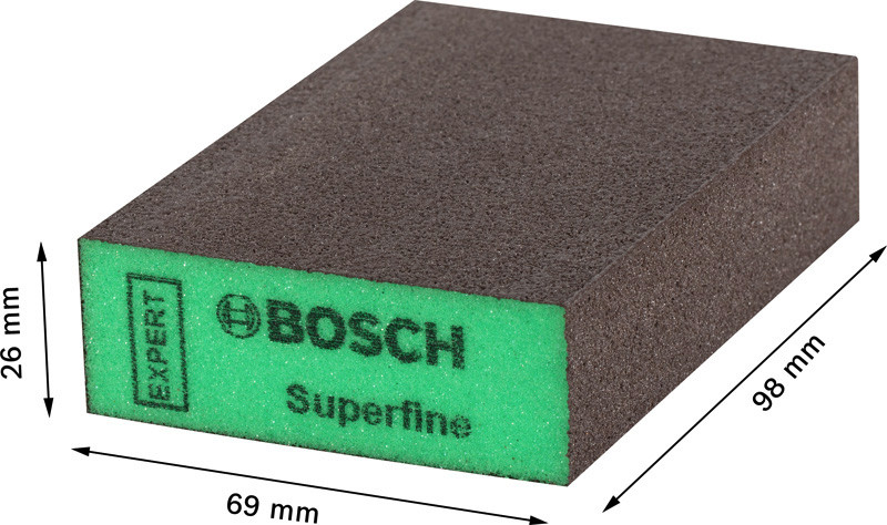 Längere Lebensdauer beim Schleifen von Holz und Farbe! Der Schleifschwamm sorgt für gleichmäßigen Druck auf die Oberfläche Manchmal gibt es keine Alternative zum Handschleifen. Das Problem war, dass sich herkömmliche Schleifblätter beim Schleifen von Rundungen und Kanten schnell abgenutzt haben. Oft waren sie auch zugesetzt oder brachen. Die einzige Lösung war, viele Schleifblätter zu kaufen, was zu einem hohen Verbrauch und viel Abfall führte. Heute gibt es Schleif-Schaumstoffe mit Bosch Surface Structure. Quadratische Schleifschwämme sind ideal zum Schleifen von ebenen Flächen und 90-Grad-Kanten. Der Bosch EXPERT S471 Standard-Schleifblock ist eine Revolution beim Handschleifen. Wenn du ihn einmal verwendet hast, möchtest du nie wieder etwas anderes. Starke, flexible Verbindung der Schleifkörner mit dem Schaumstoff dank Bosch Surface Structure