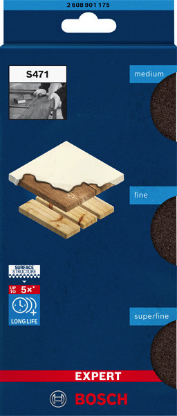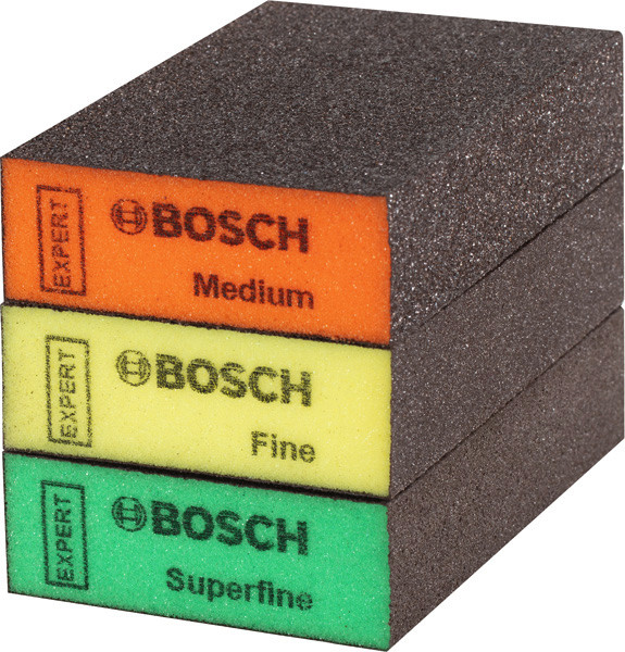 Längere Lebensdauer beim Schleifen von Holz und Farbe! Der Schleifschwamm sorgt für gleichmäßigen Druck auf die Oberfläche Manchmal gibt es keine Alternative zum Handschleifen. Das Problem war, dass sich herkömmliche Schleifblätter beim Schleifen von Rundungen und Kanten schnell abgenutzt haben. Oft waren sie auch zugesetzt oder brachen. Die einzige Lösung war, viele Schleifblätter zu kaufen, was zu einem hohen Verbrauch und viel Abfall führte. Heute gibt es Schleif-Schaumstoffe mit Bosch Surface Structure. Quadratische Schleifschwämme sind ideal zum Schleifen von ebenen Flächen und 90-Grad-Kanten. Der Bosch EXPERT S471 Standard-Schleifblock ist eine Revolution beim Handschleifen. Wenn du ihn einmal verwendet hast, möchtest du nie wieder etwas anderes. Starke, flexible Verbindung der Schleifkörner mit dem Schaumstoff dank Bosch Surface Structure